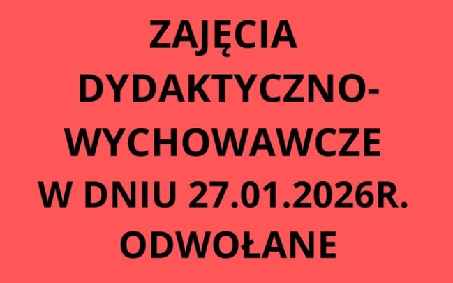 w związku z planowaną ponownie na jutro gołoledzią oraz realnym zagrożeniem dla bezpieczeństwa uczniów i pracowników szkoły, w dniu 27 stycznia 2026r. zajęcia dydaktyczno-wychowawcze w Czwórce zostają zawieszone.